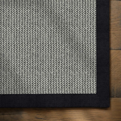 Woven from 100% Wool this combination is a premium level of softness and strength, a stylish and adaptable weave matched with an aesthetic, rich and soft Cotton Chenille in a deep navy blue Border